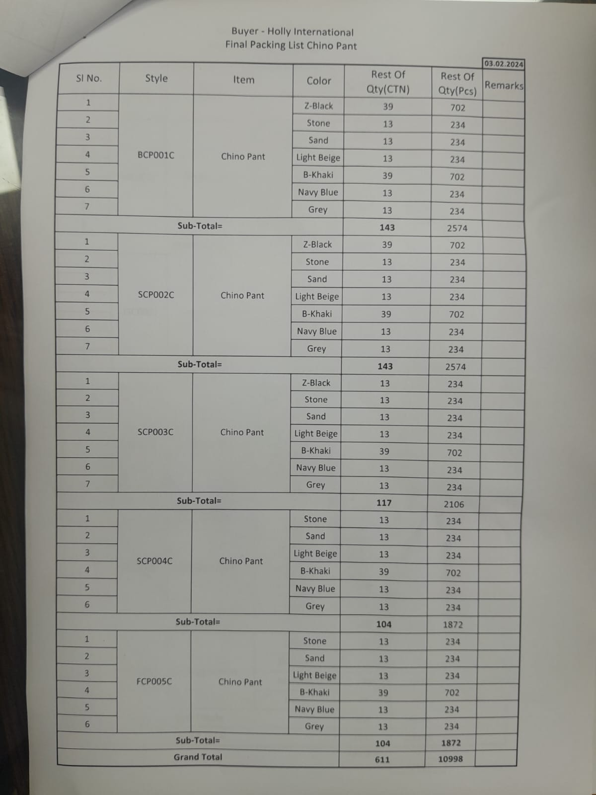 Total: 1 160 pcs.