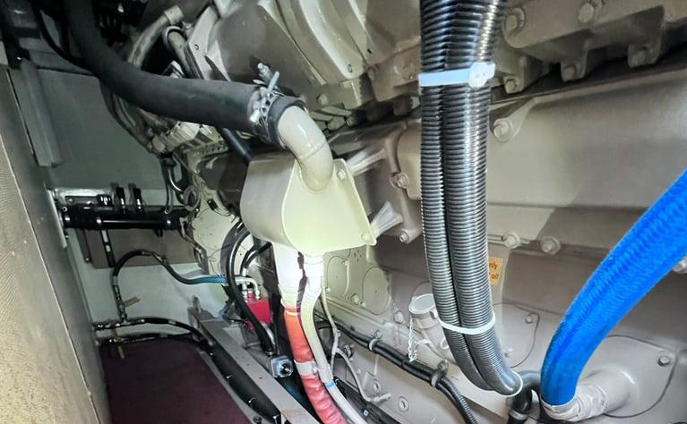 The engine and alternator are integrally mounted. This assembly is isolated from the bedplate base by rubber isolation mounts.