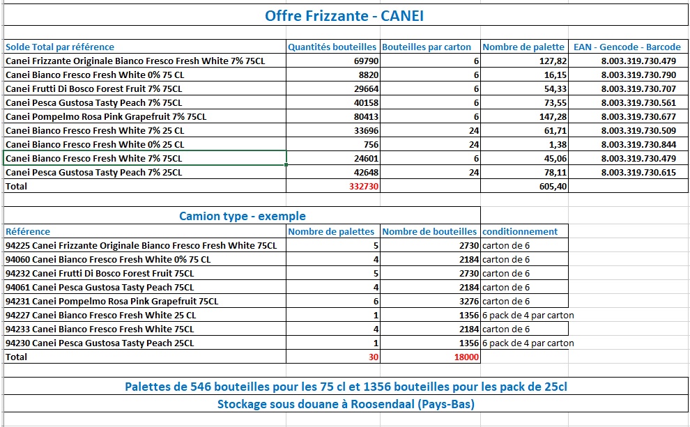 This an offer for a big stock of italian sparkling wines currently in storage at a logistics company in the Netherlands.