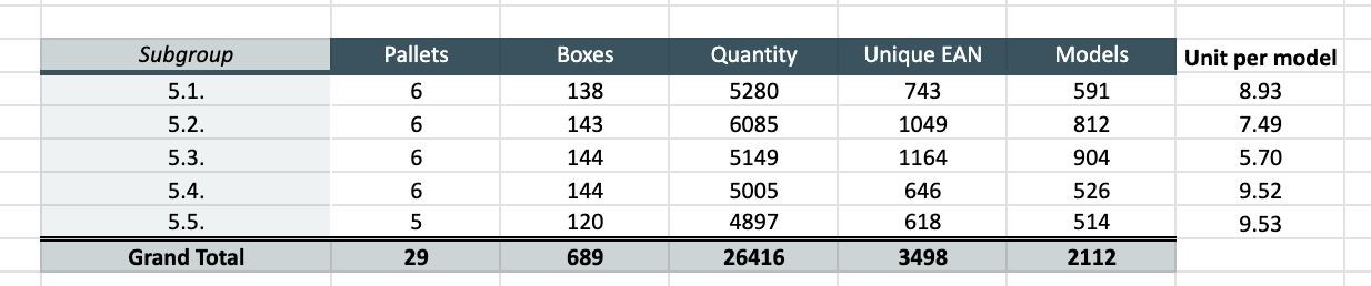 Total: 7 630 pcs.