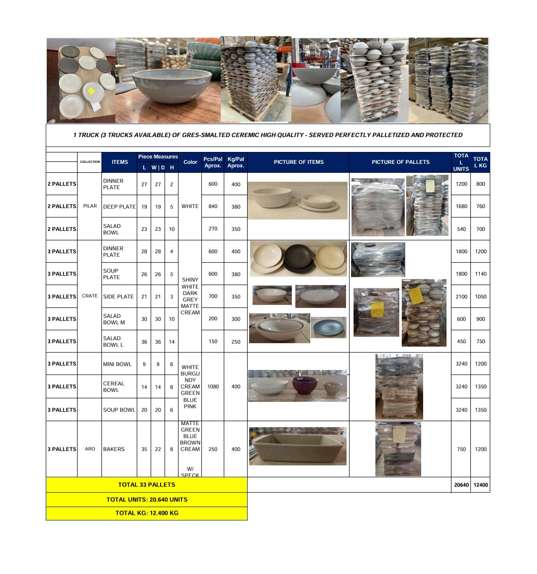 12 400 KILOS PER TRUCK