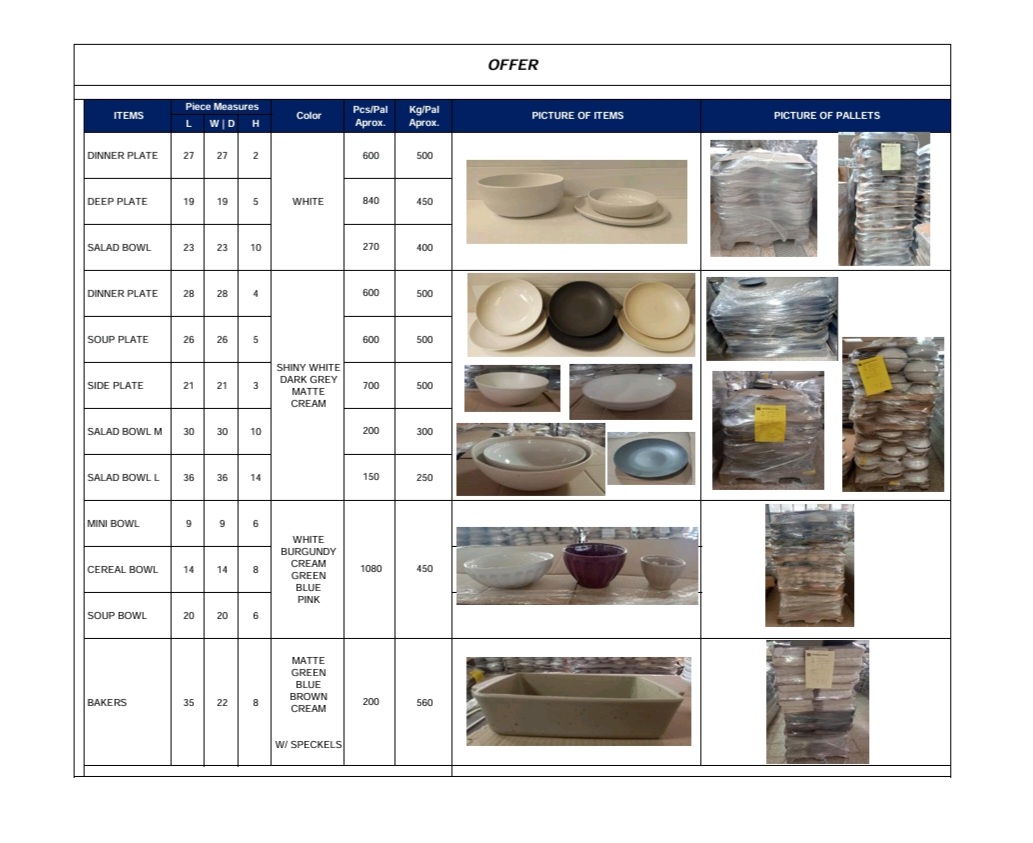 STOCK OF CERAMIC PIECES: PLATES, BOWLS, ETC. Europe