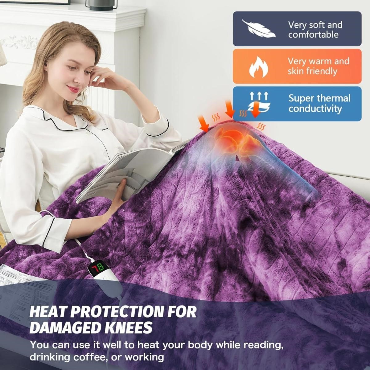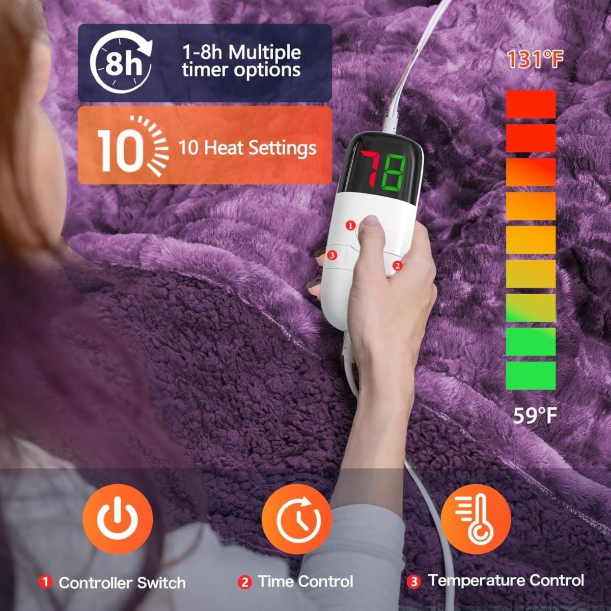 Faux Fur Warm Heater Lap Blankets with 5-Position Timer