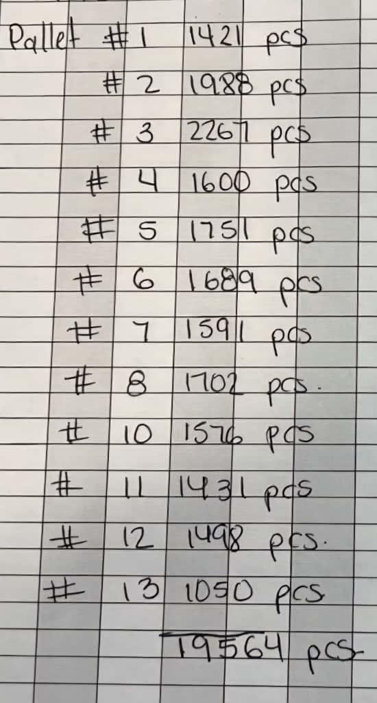 Total: 19 564 pieces / 13 pallets