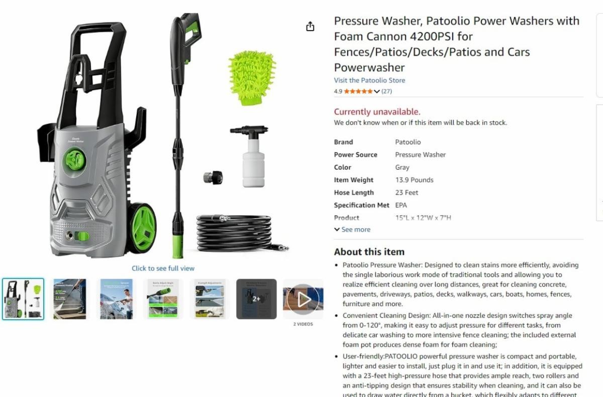 Patoolio 4200PSI Electric Pressure Washer and Foam Cannon USA