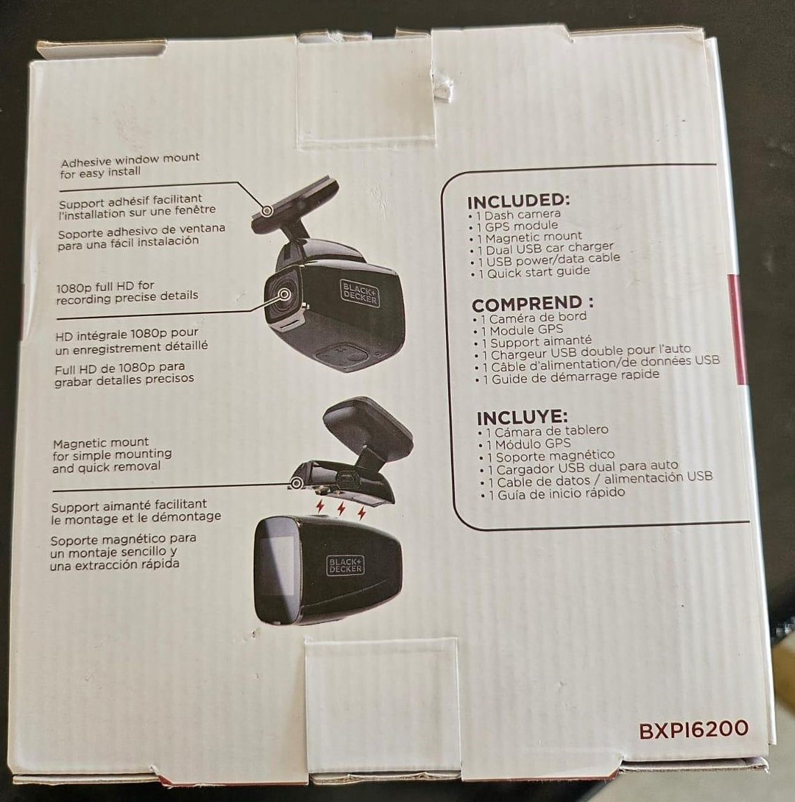 62654 - Black + Decker 1080P Full HD Dash Camera With Magnetic Mount USA