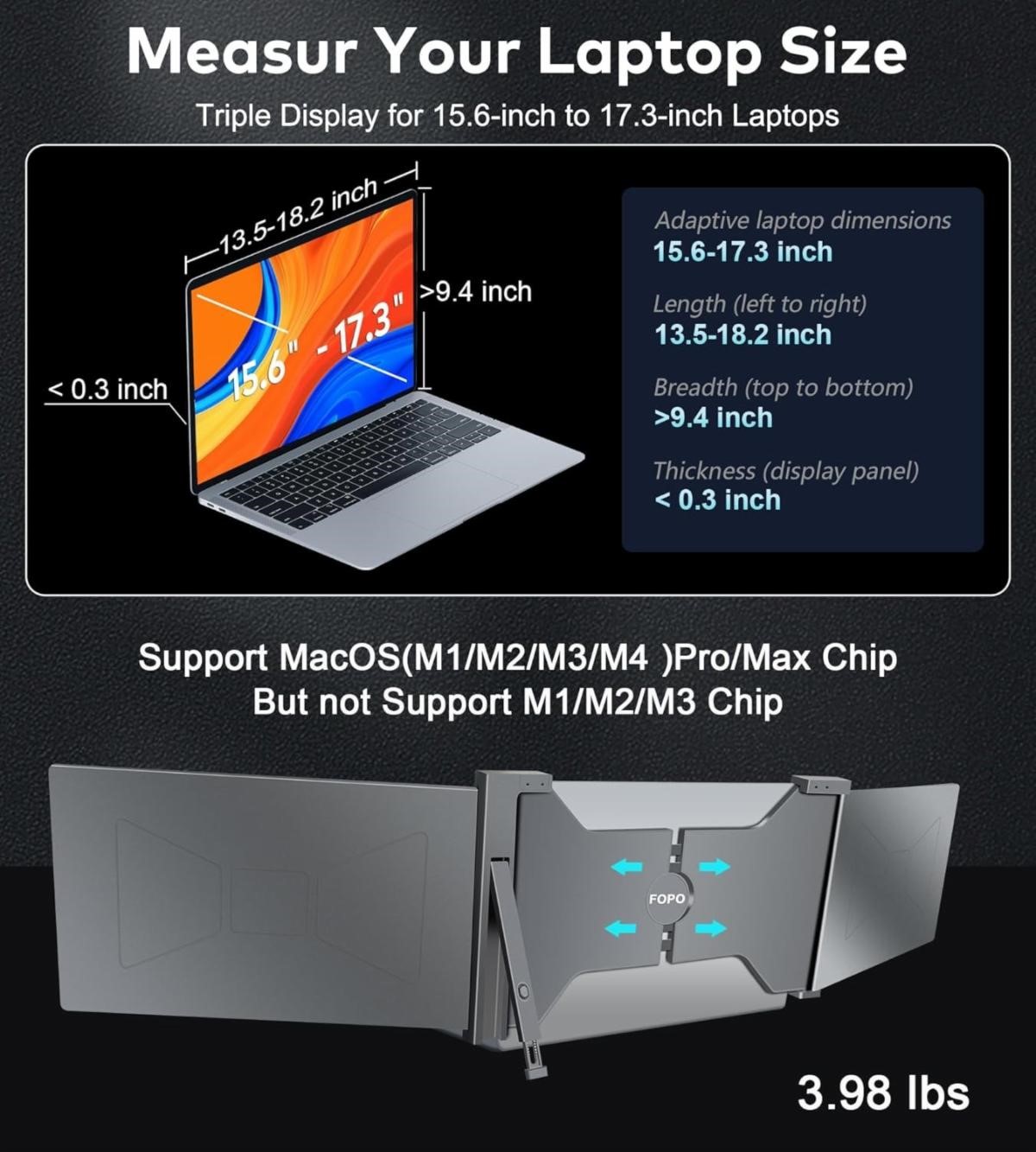 FOPO 15.6" Triple Portable Laptop Monitor