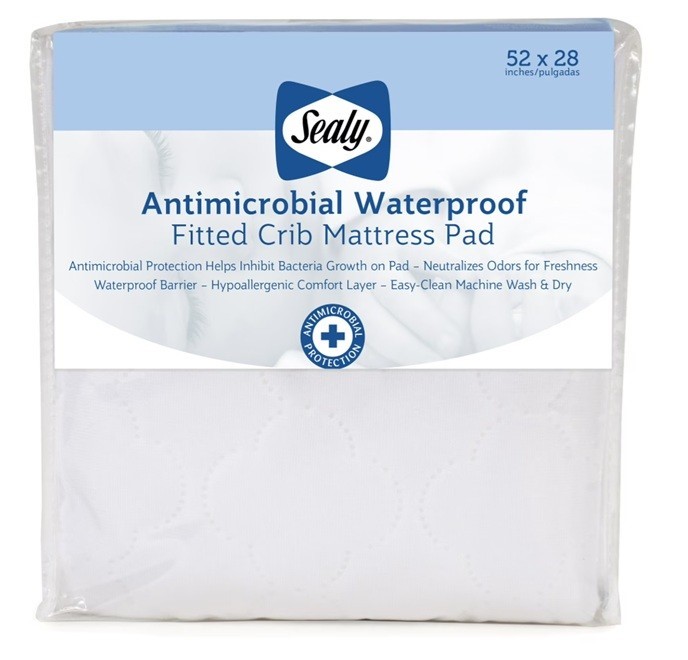 64708 - Sealy 52" x 28" Baby Antimicrobial Waterproof Toddler and Crib Mattress Pad USA