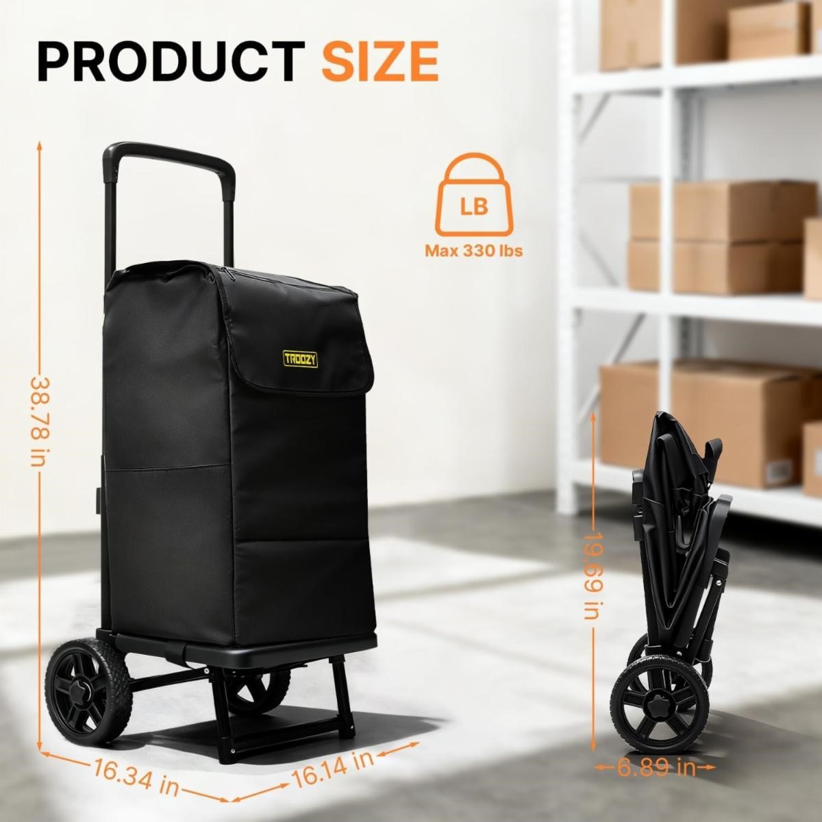 2-in-1 57L Foldable Shopping Cart USA