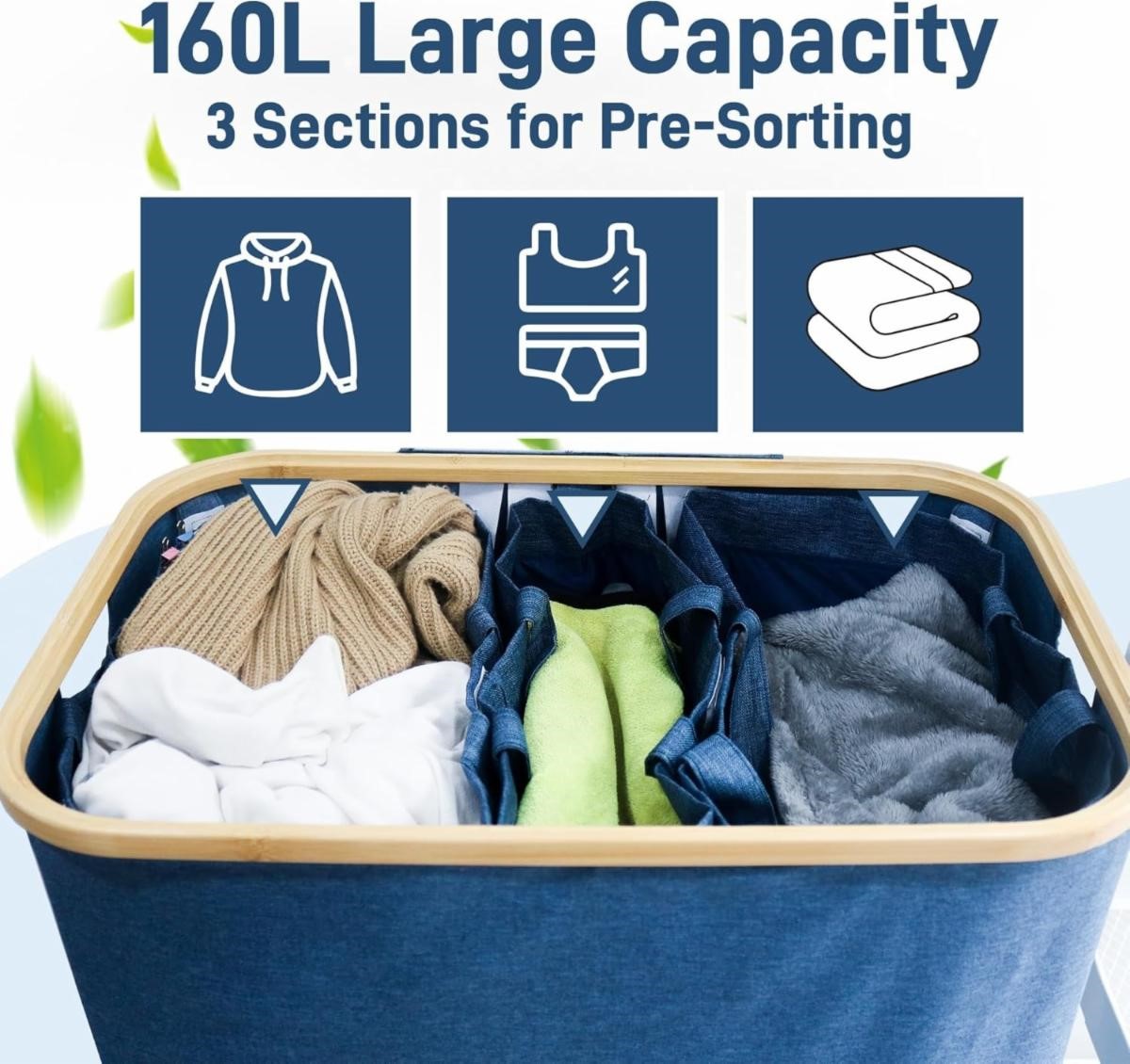 Quibbay 160L Large Laundry Hamper with Lid