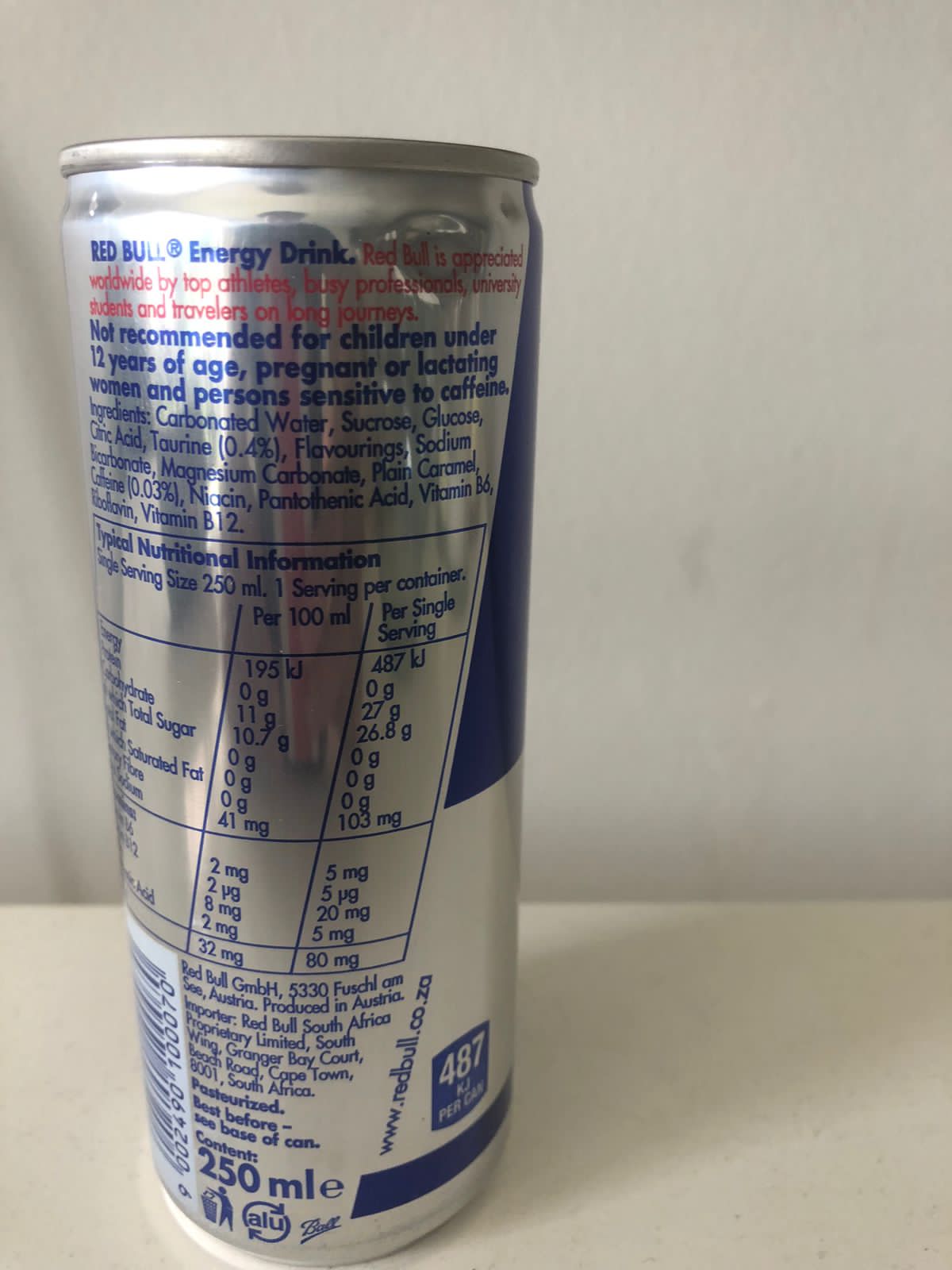 The cans have the South African importers name on