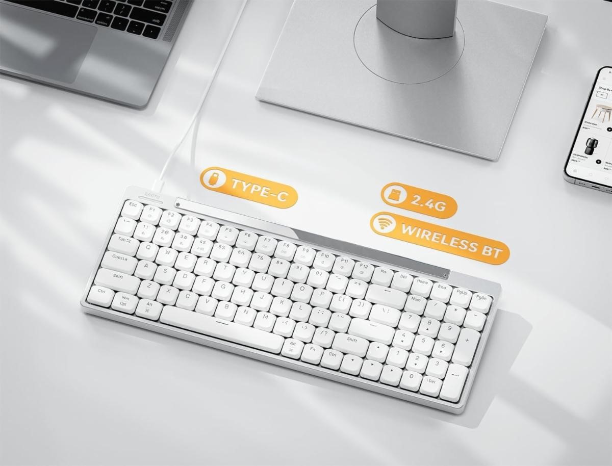 Earto CT100 Wireless Mechanical KeyboardBluetooth/2.4G/ Wired, White LED BacklightTotal: 380 unitsPrice take all: 19.50$ pcs.FOB: LA, USA