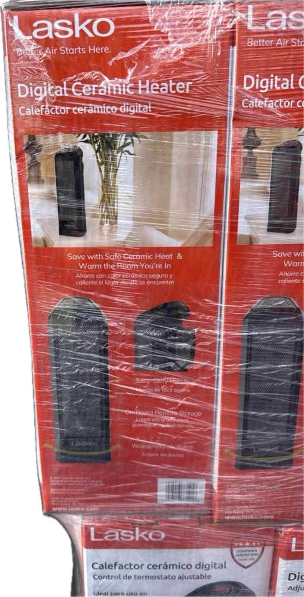 Lasko 15.75" 1500W Digital Ceramic Tower Heater with Remote ControlTotal: 1900 unitsPrice take all: 18.75$ pcs.FOB: LA, USA
