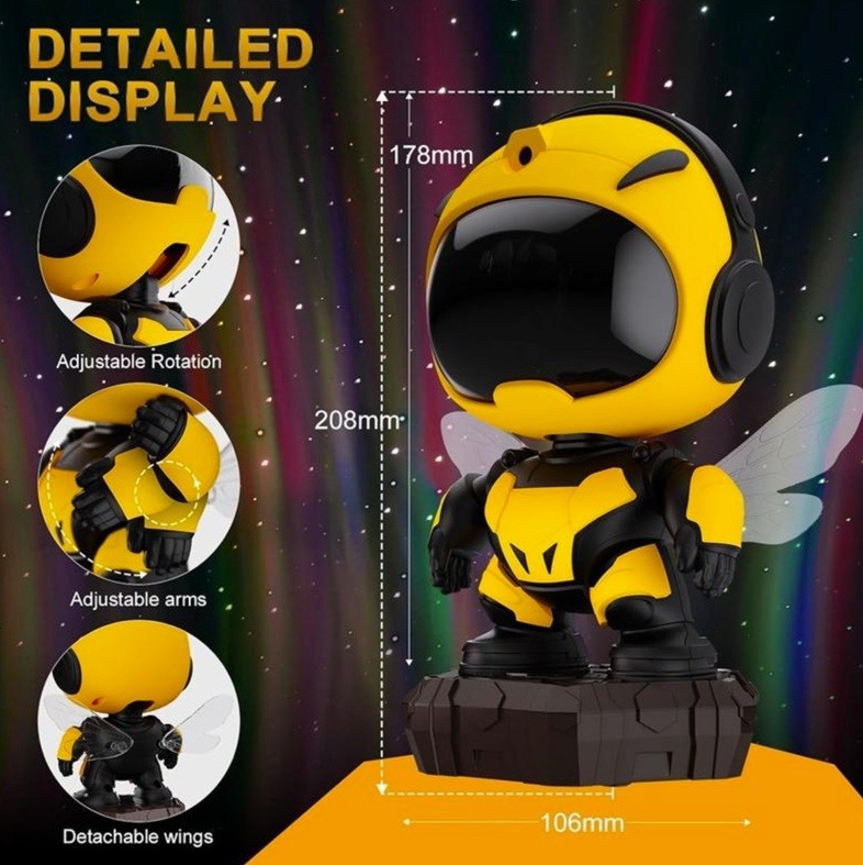 Little Bee Starry Sky Projector Lamp with Timer, Remote Control and Bluetooth Speaker and Built-in White Noise Music